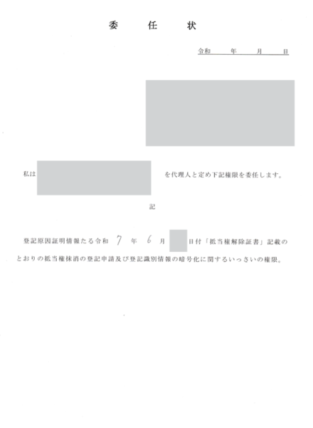 委任状は、本来銀行さんから、司法書士さん、もしくは手続する個人に委任するもので、それらの名前が入ります。