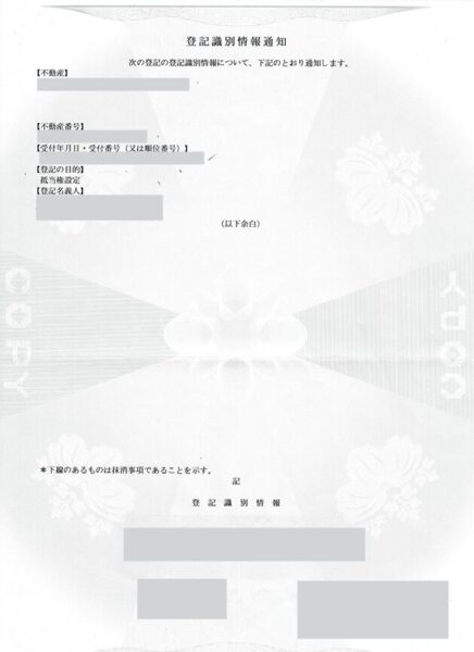 登記識別情報は抵当権を付ける時に銀行さんが使用したものです。
