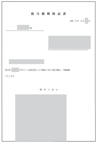 銀行が”住宅ローン払い終えたので抵当権を解除します。”というものですね。